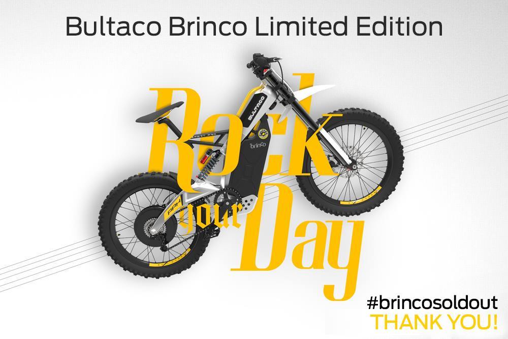 The Bultaco Brinco was launched with an initial run of 175 'limited edition' bikes with a white frame and yellow trim. Each bike carried a unique serial number in the decals on the seat post cover. The bikes were offered on pre-order at the end of 2014 for €4,800, and all were sold by mid 2015. Deliveries began soon after, and with the arrival of the limited edition bikes at dealers, test rides began.
