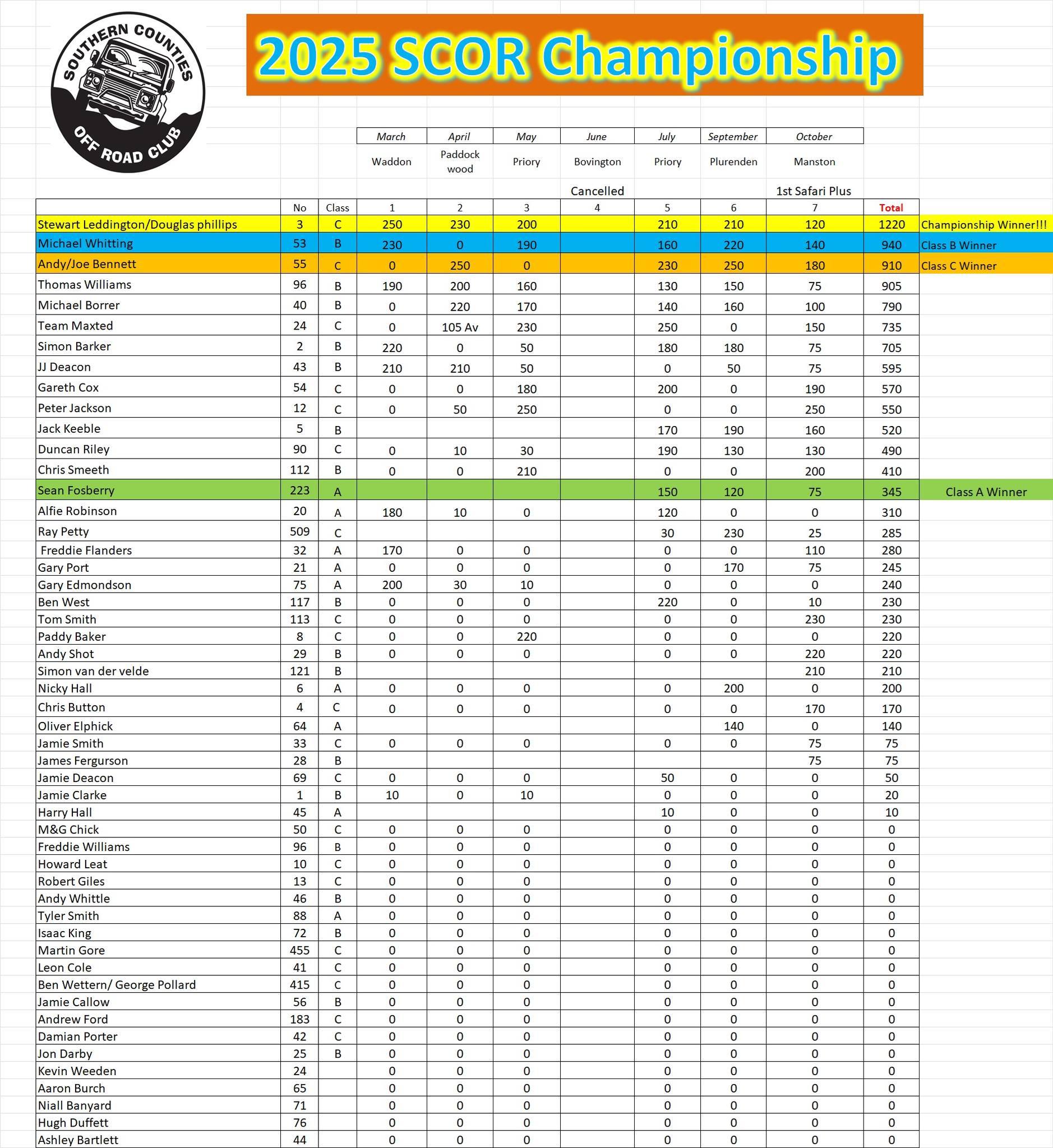 It has been confirmed, the RAV4 has won class A in the 2025 Southern Counties Off Road Championship.