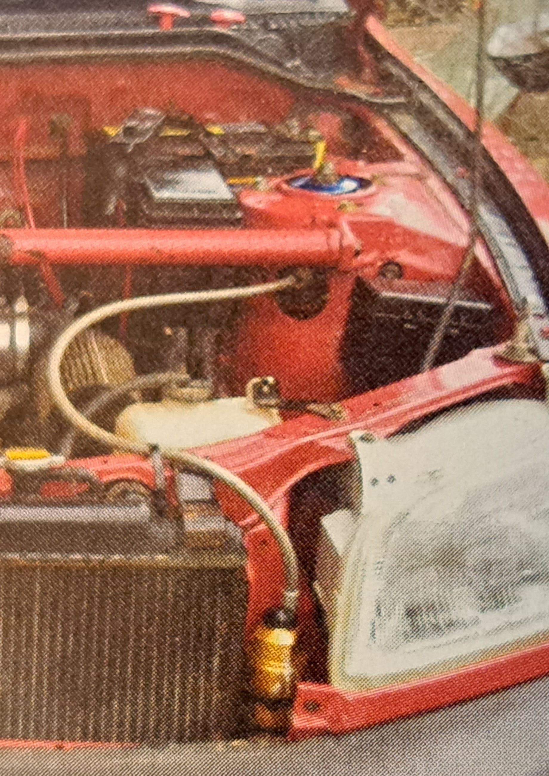 From photos in the same article, it looks like up front they were 2.5" coil overs with remote reserviors, which were passed through holes in the turrets and were mounted each side of the radiator behind the front bumper.