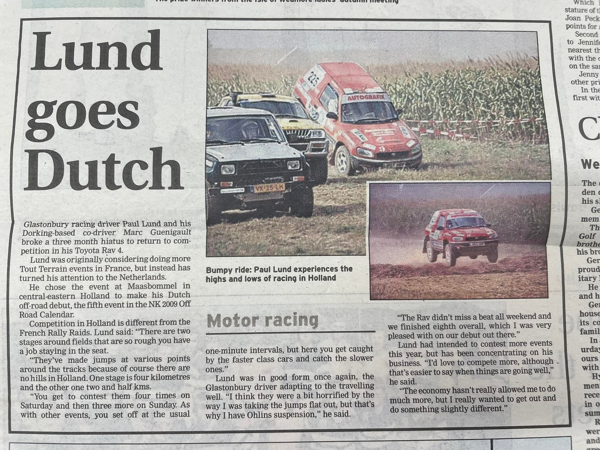 Competition in Holland is different from the French Rally Raids. Lund said: "There are two stages around fields that are so rough you have a job staying in the seat.